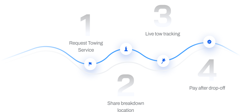 24/7 towing assistance when you need it most. Track your tow truck in real-time and get your vehicle safely to your preferred workshop or location.